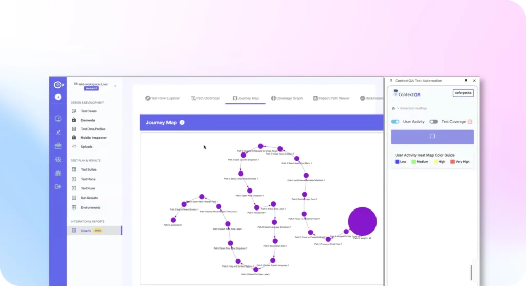 The ContextQA platform studies prior runs and source-of-change patterns to forecast areas likely to fail, so you can get ahead. Testing sequences adjust automatically to reduce risk, saving you time and wasted efforts.