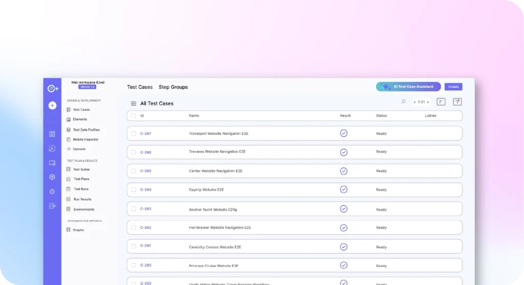 Our AI tools for software testing remove the maintenance grind by automating creation, execution, and updates.